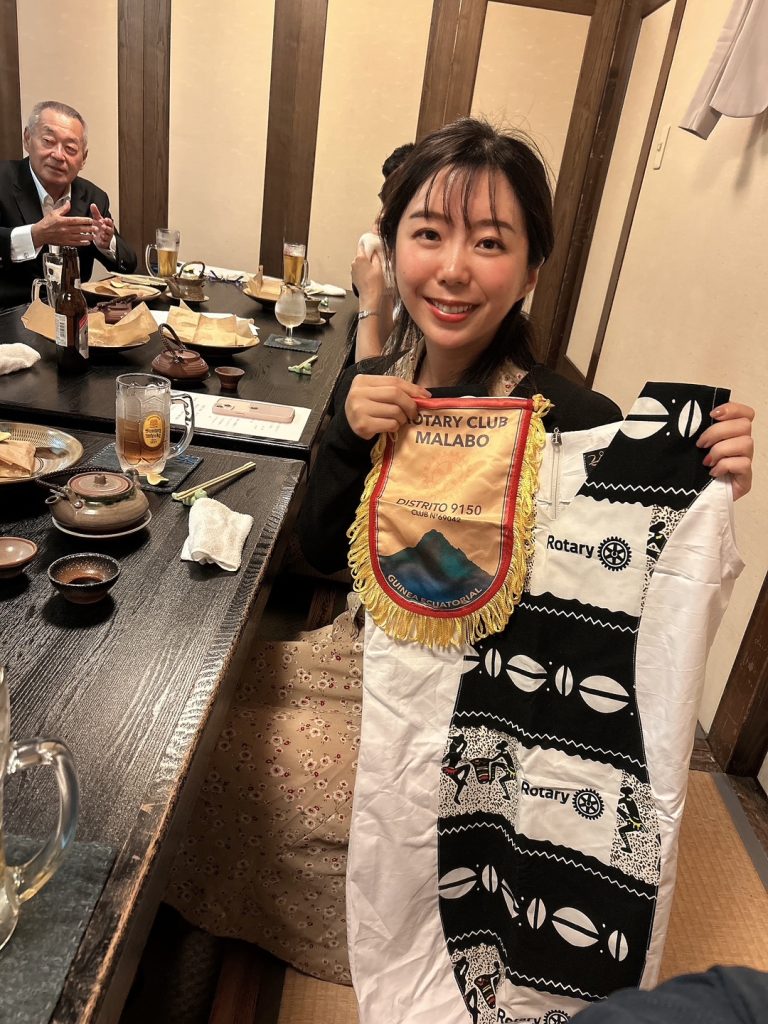 『母子の健康』の重点分野で2020年NGOジャパンハートへ勤務し小児がんこども病院の栄養部門長として勤務(ロータリーの友2021年5月号に特集記事が掲載されました)。その後UNICEF中央アフリカ地域事務所にて栄養担当官としてセネガルで活動致しました。帰国の際は現地のMALABOロータリークラブよりバナーとロータリーロゴ入りの手作りのワンピースを贈呈されました。